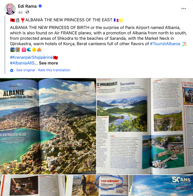 Prime Minister Edi Rama has taken to social media, portraying Albania as “The New Princess of the East”. The Prime